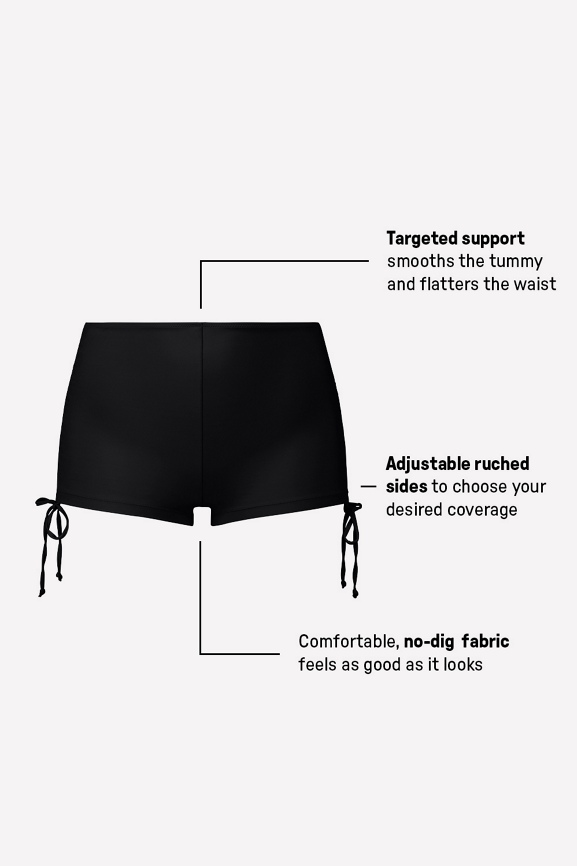 Whether you crave extra coverage or want to get cheeky, these high-waist booty shorts keep your options versatile. Wear them on their own or as a swim coverup for an adjustable style that cinches your waist and smooths your tummy.